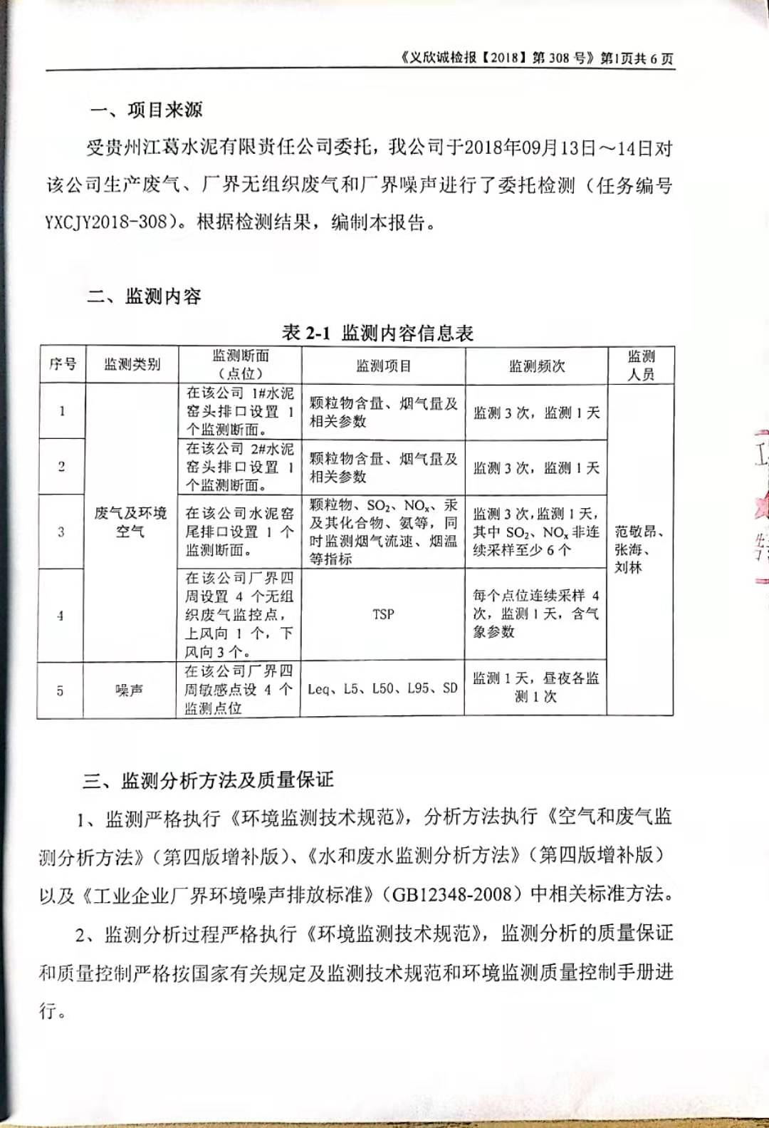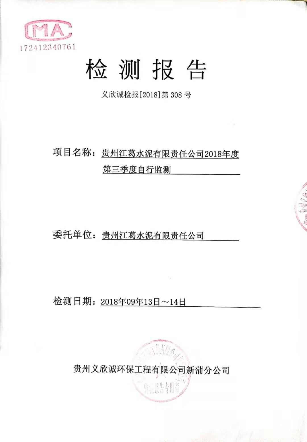 2018年第三年季度自行監(jiān)測檢測報告